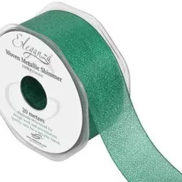 "description": "Eleganza Ribbon Woven Metallic Shimmer Green 38mm x 20M 2024 Metallic Oaktree EXTRAVAGANZA2025 Ribbons & Bows                    ",