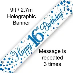 Blue Sparkling Fizz 16th Birthday Banner 2023 Colour Theme Age 16 16th Sixteen Sixteenth Teen Teenager Sweet 16 Male Boys For Him Bday Holographic Holo Sparkling Fizz Oaktree EXTRAVAGANZA2025 Kids Ages Kids Age Partyware Age Milestone Partyware