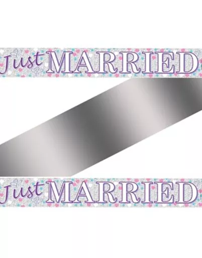 "meta_title": "Just Married Holographic Foil Banner",