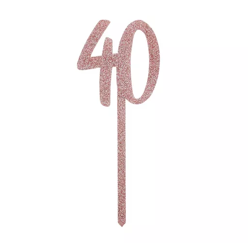 "meta_title": "Rose Gold Glitter Acrylic 40th Birthday Cake Topper",