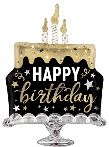 Anagram Birthday Surprise Black & Gold Cake 29" Supershape Foil Balloon
