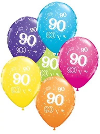 "meta_description": "All Year Birthday Pioneer Qualatex Qualatex 17915 Age 90 Standard Assorted Standard Latex Latex 10" - 13" 0 Round 6 Pack Balloons Latex Balloon",