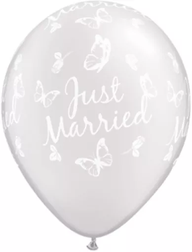 "meta_title": "Pearl White Just Married Butterflies 11" Latex Balloons 25pk",