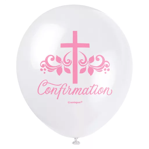 Unique 8 Pack Latex Balloons Printed Pink & White Confirmation 12"