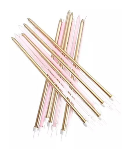 "meta_title": "Pastel Pink & Metallic Gold Tall 18cm Candles 16pk",